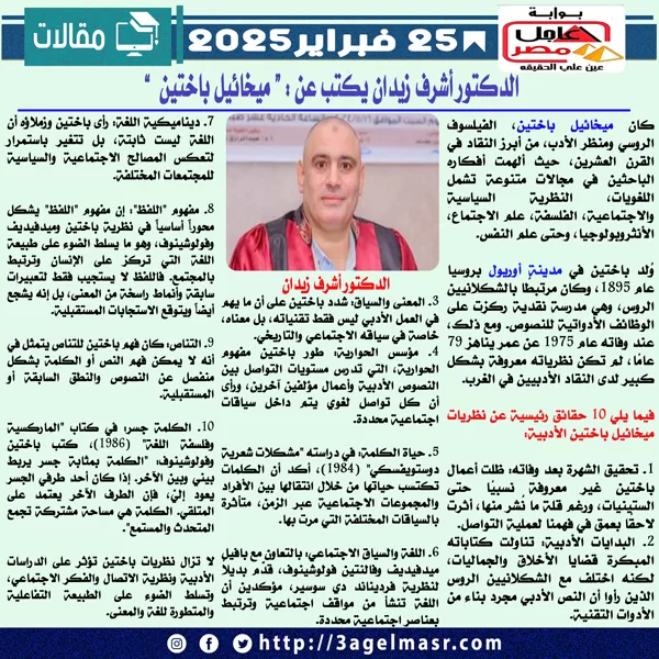 الدكتور أشرف زيدان يكتب عن : “ ميخائيل باختين ”